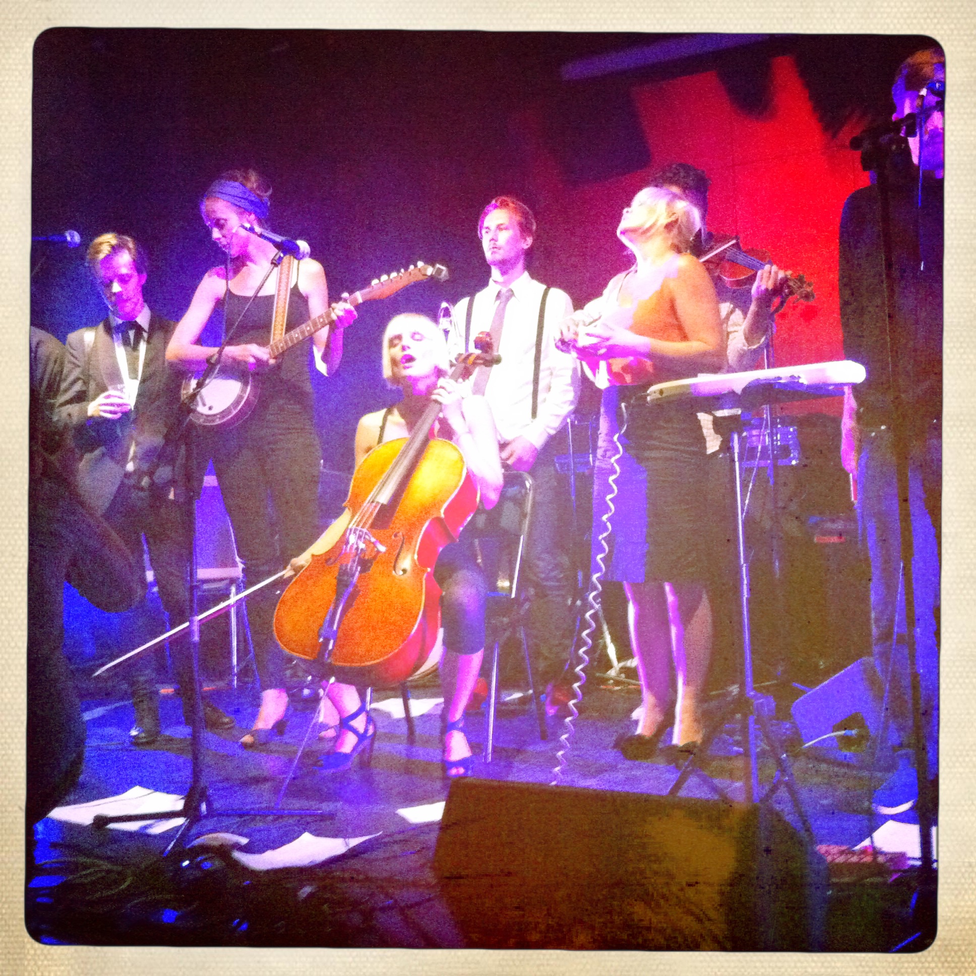 Det er længe siden at jeg på den måde har kunne forsvinde ind i min helt egen bobbel og bare svæve væk med musikken. Jeg var især svært glad for de visuelle drømmescenarier de havde blæst op på bagvæggen, som stod i fin harmoni med musikken. Det var en rigtig god musikalsk oplevelse. Bandsene spillede sammen på kryds og tværs og mange af musikerne havde op til flere roller hele koncerten igennem. Af højdepunkter kan jeg nævne Before The Show (som efter min mening spillede 1 nummer for lidt), Sleep Party People (som jeg dog førhen ikke har været så glad for) og My Name Is Legion og Hellraiserten, som begge var store overraskelser. Førstnævnte fordi de med ét forvandlede scenen til et stort rave, hvor danseskoene ikke fik for lidt og sidstnævnte, fordi jeg aldrig før har hørt bandet og musikken tiltalte mig yderst meget. From Sarah var også et rigtig godt input og selvfølgelig var koncertens afslutning med hele banden på scenen der fremførte det førnævnte Band of Horses nummer det absolutte højdepunkt. Man kunne nærmest ikke have afsluttet en så dejlig aften bedre eller smukkere…og med disse ord kommer her et sidste stemningsbillede fra den netop nævnte afslutning: